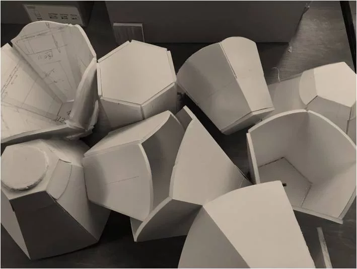 而她就是這樣長大的.....?以手的溫度 暖熱每個可能孕育成熟的想法 喜樂的開始並非來於草圖或電腦3D,而是一個又一個初自於設計師之手的紙模,透過手感切割出的每一個紙模,讓我們很快速地感受其在空間中比例與重量,對完美比例的追求表現在堆積如山的紙模堆中,喜樂就在5瓣、6瓣、8吋、7吋還是6吋大、燈板與燈頭比例間選擇......??鄰家女孩這個創作的初衷領著我們在這紙模丘中找到了Ms. Right。?