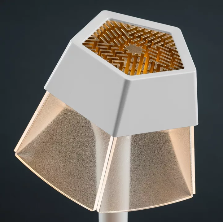 不知你可發現喜樂的散熱設計也很特別呢!金屬散熱片是利用表面積來散熱,其密密麻麻的花瓣是經過多位模具專家稹密的科學分析後才定案。設計師對美感、質感與觸感的堅持、工程師對散熱的執著、製造良率的達成......再再考驗我們PM的溝通能力,做為喜樂亮點的金屬散熱片最後還是在大家都滿意下誕生了。