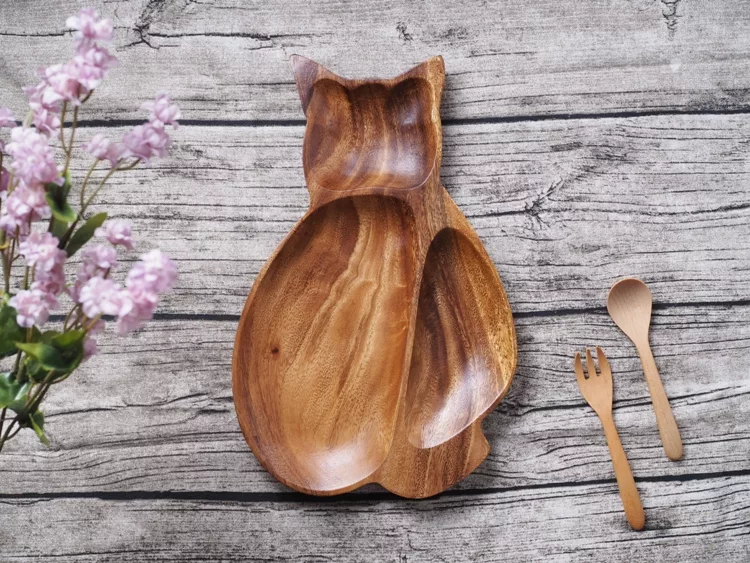 【TOMO】木質分隔餐盤_貓咪 評價
