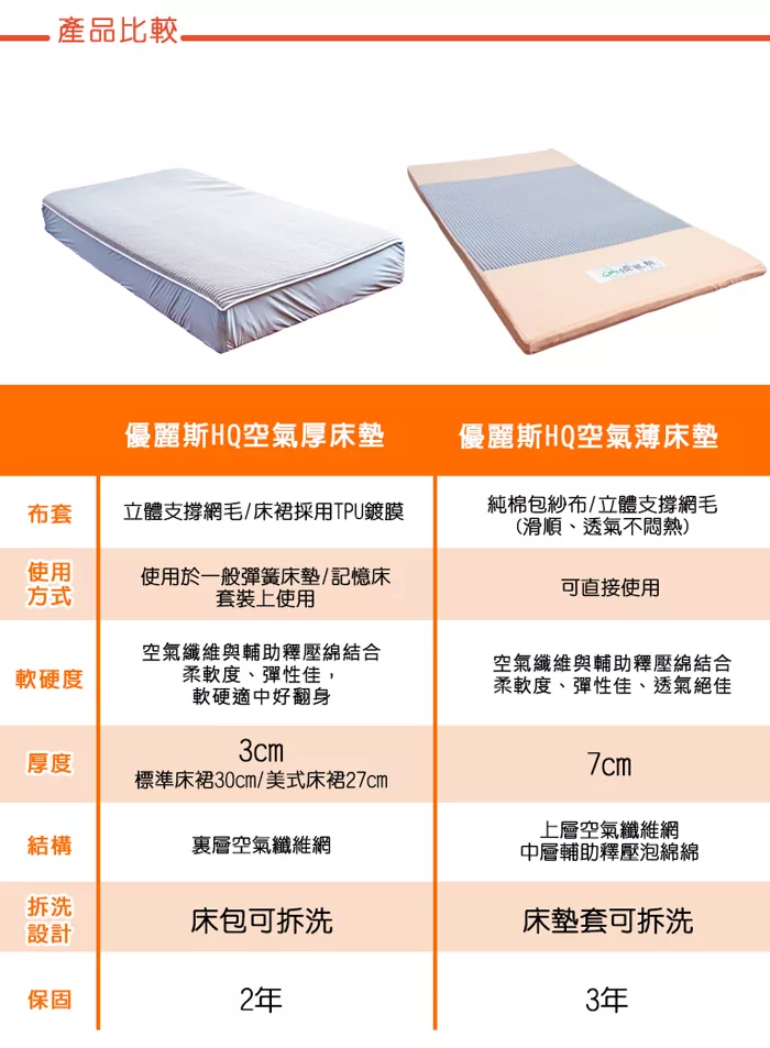 本款使用HQ空氣網+輔助透氣釋壓綿
