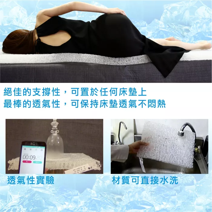 且90%以上為空氣,不但透氣性佳、冬暖夏涼,最重要的是「可輕鬆翻身」。