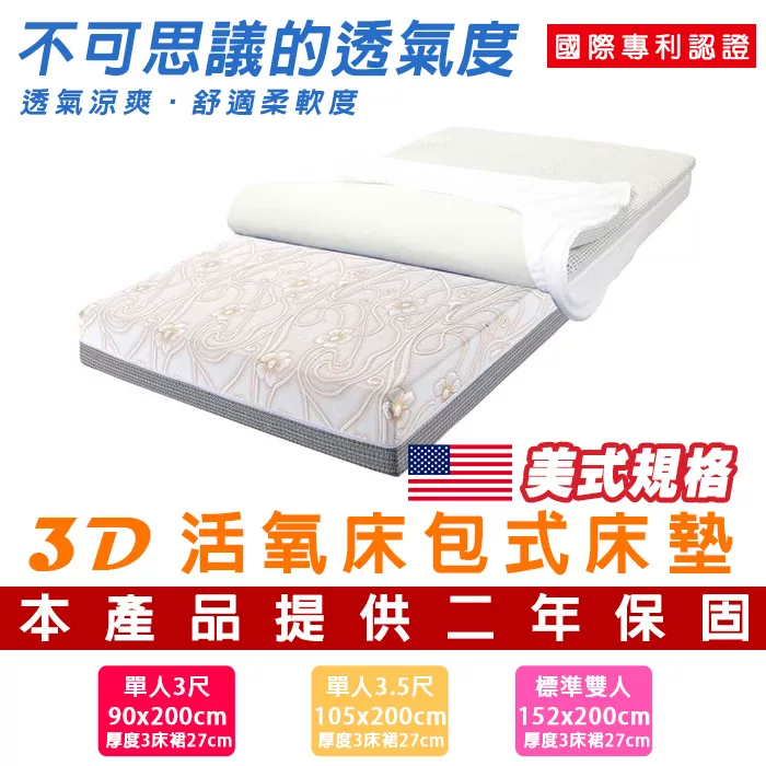 吉加吉 3D活氧 空氣床包 HQ-9313 (雙人5尺) 薄型床墊 美式規格雙人5尺 評價