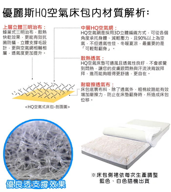 優麗斯HQ空氣系列薄床墊的設計,提供人體全身最大的支撐與承拖,且具有輔助您翻身及起身時所需的動力。