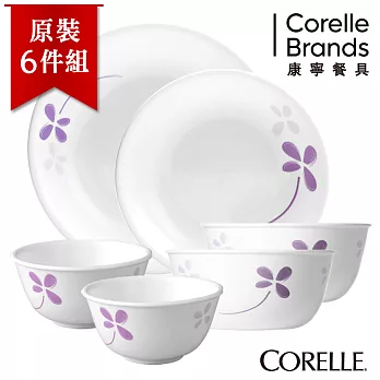 【美國康寧 CORELLE】紫色幸運草原裝6件式餐具組
